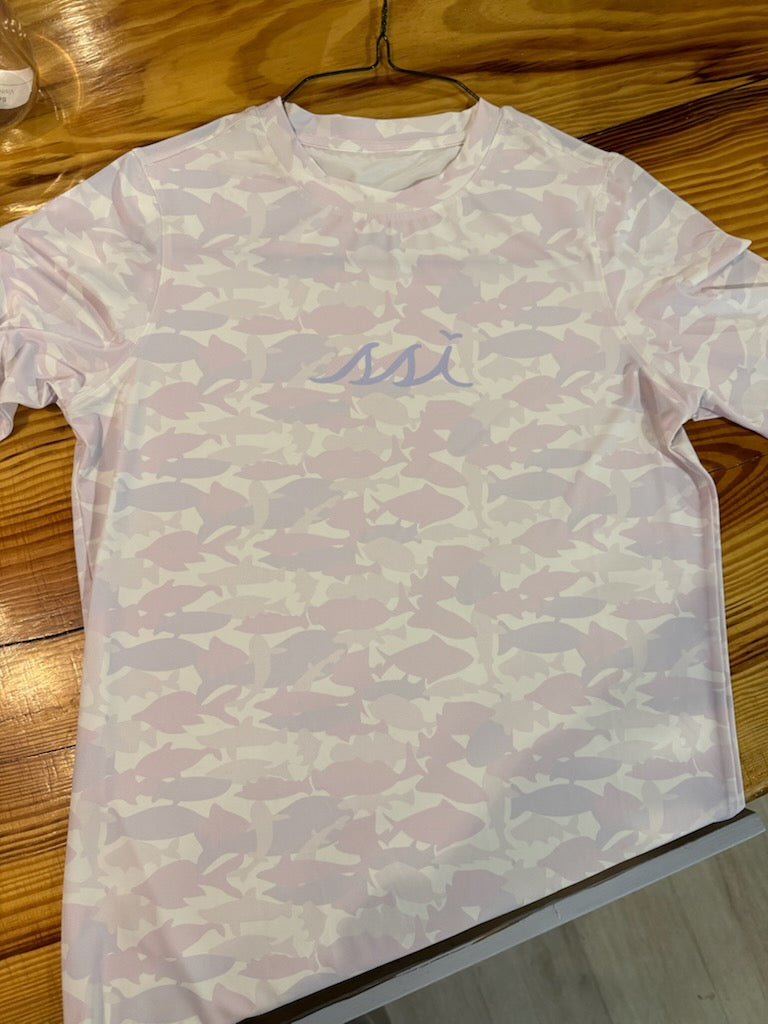 SPF 50 Kids Purple Fish Camo Sun Shirt / Rash Guard, Long Sleeve, Thumbholes