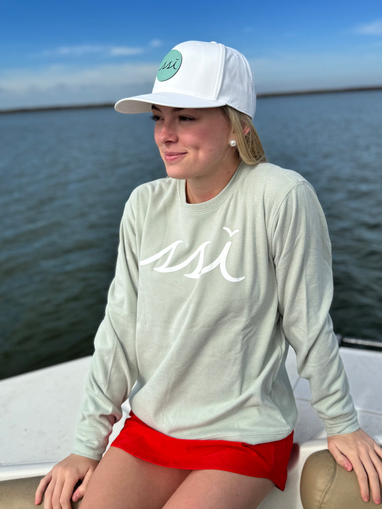Ultrasoft Long Sleeve Light Peacock Unisex Crew with White Logo on Chest