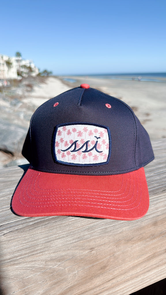 Navy Hat w/ Nantucket Bill- Palm Trees Patch Logo - Legacy Heritage Hat