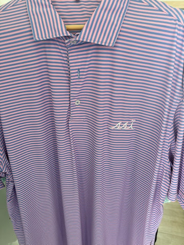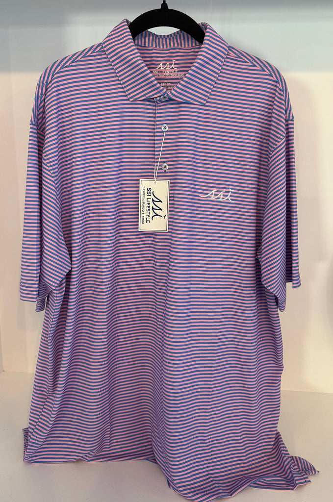 Kids Blue and Pink Stripe Stretch Performance Polo