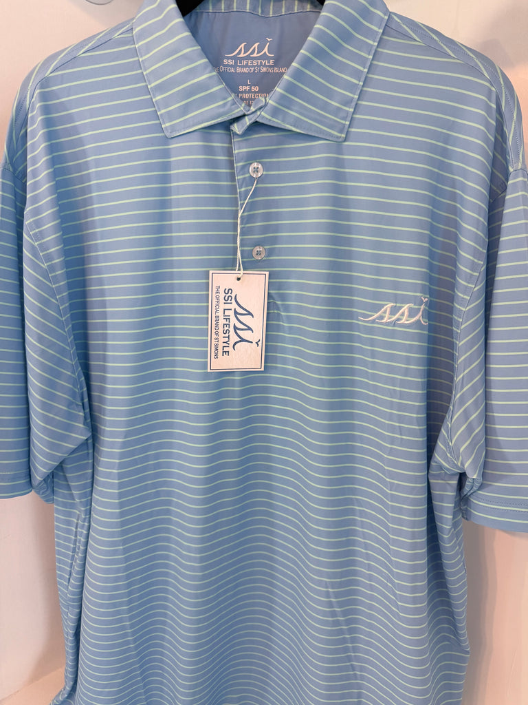 Light Blue & Aqua Stripe Stretch Performance Kid's Polo