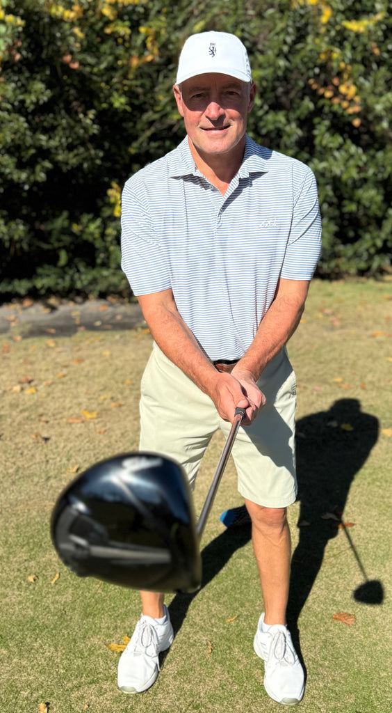Blue and Light Gray Stripe Stretch Performance Men's Polo