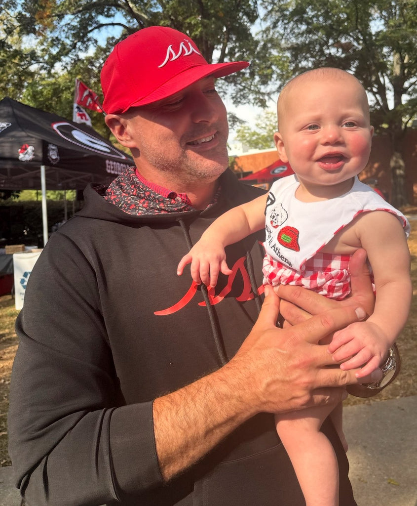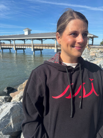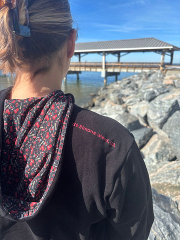 Ultrasoft Black UGA Long Sleeve Hoodie Unisex Crew with Red Logo on Chest - UGA Hoodie Liner